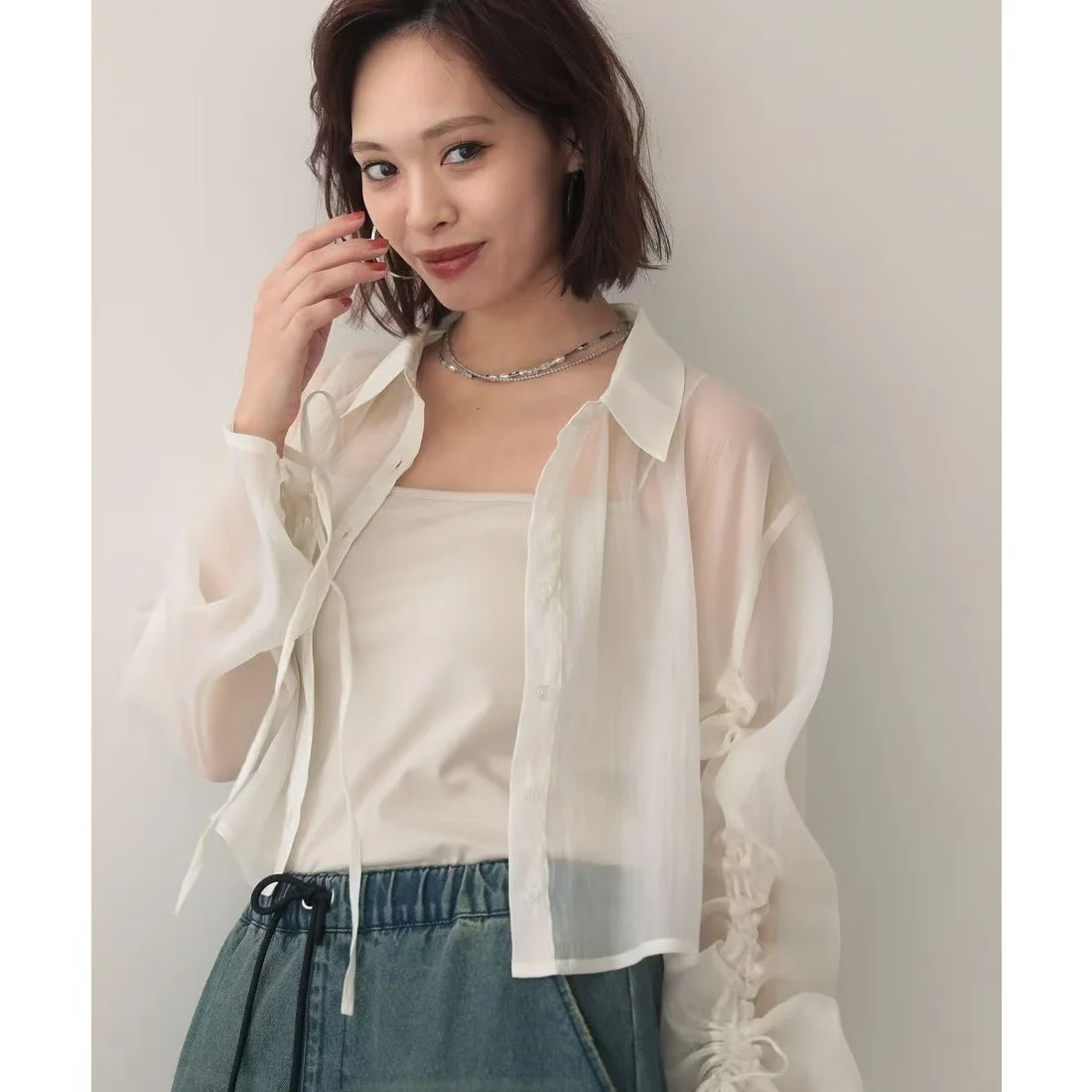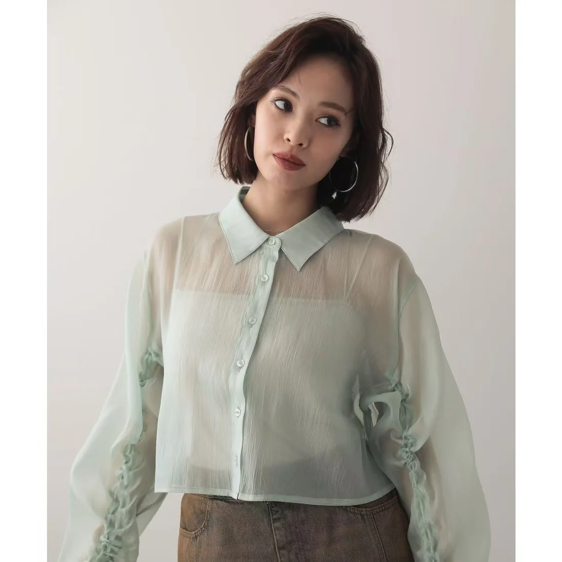 Women's Vintage Style Long-Sleeved Casual Shirt Solid Color Design for Spring Summer Woven and Button Decorated